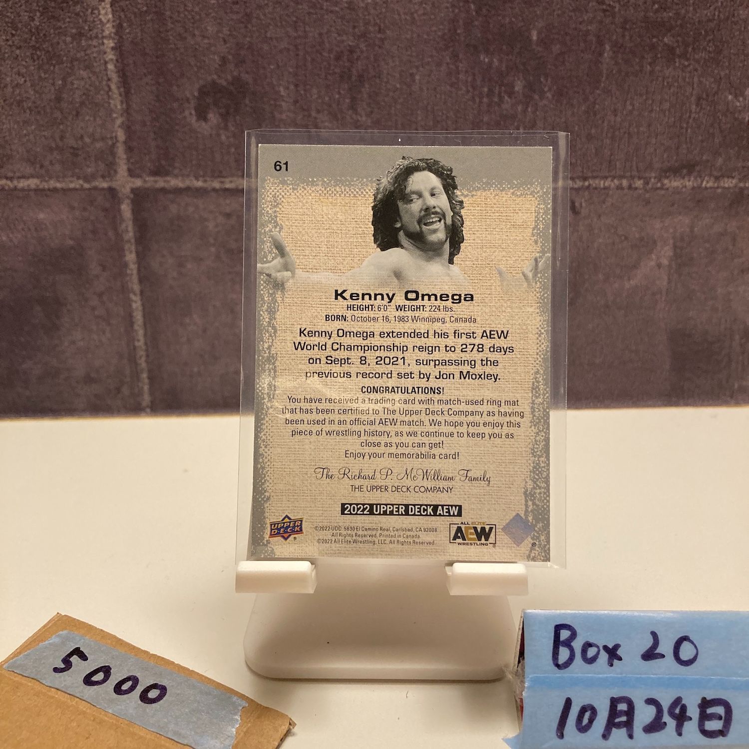 2022 Upper Deck Kenny Omega All Elite AEW Wrestling Match-Used Ring Mat Memorabilia Gold