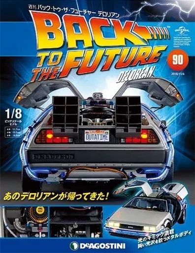 【90号】:◆さあ、あのデロリアンを作ろう!、・エンジンカバーを設置する、-今号では、エンジンカバーを設置する。、開閉のためのパーツをエンジンカバーに取り付け、、今までに組み立てたボディに設置しよう。::◆メイキング・ザ・ムービー、・リンカーン「コンチナンタル(1967)」、『HIT & RUN』(2012年)、-映画の中の名車-、-俳優のダックス・シェパードが、主演だけでなく監督と脚本を、務めた2012年の『HIT & RUN』。、自身の婚約者や友人などをキャスティングしたこの映画では、、シェパードが所有するリンカーン「コンチナンタル」に、主役級の役割が与えられている。::◆ビハインド・ザ・シーン、・一家の再集結、-1989年の12月下旬の撮影-、-『バック・トゥ・ザ・フューチャーPART3』の撮影も、、いよいよ終わりが近づいてきた。、1989年のクリスマスが近づく中、、マクフライ一家が再び集結し、ロケ地やスタジオで残りの、シーンが撮影されていった。::◆コラム・オブ・ザ・フューチャー、・イーストウッド峡谷、-名前が変わった峡谷-、-デロリアンが1985年に帰ってくると、線路沿いには、「イーストウッド峡谷」と記された看板が立っている。、その峡谷の元の名は、ショーナッシュ渓谷。、そして本来なら、クレイトン峡谷となるはずの峡谷だった。: