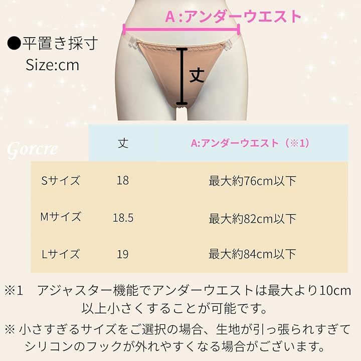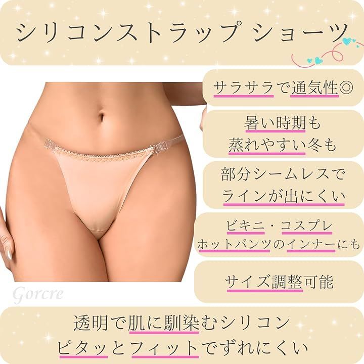Gorcre シリコン 透明 ストラップ ショーツ レディース タンガ Tバック 下着 水着 コスプレ インナー 伸縮 サイズ調整 透け防止 (ベージュ, L)