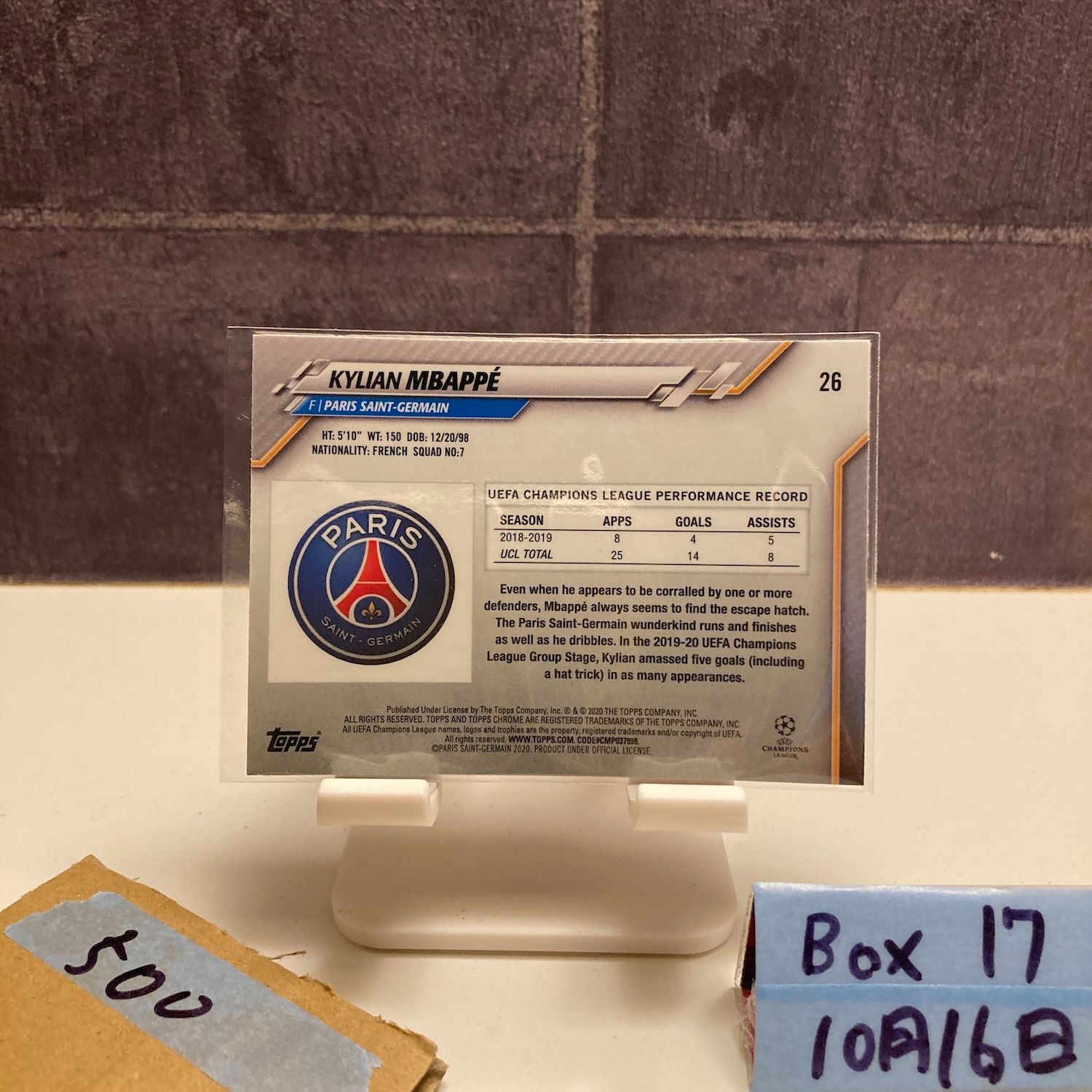 2019-20 Topps Chrome Kylian Mbappe Paris Saint-Germain UEFA Champions League