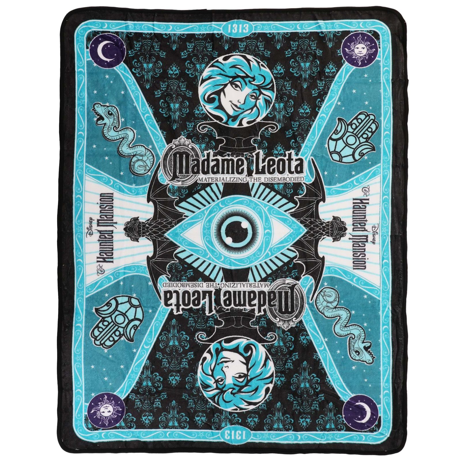 ディズニーの人気アトラクション 『ホーンテッド・マンション』フリースブランケット。 アメリカから直輸入品です。 ポリエステル100% 超ふかふかの柔らかいフリース素材ブランケットです。 前面にマダム・レオタのタロットカード グラフィック。 約117cm × 152.5cm 公式ライセンス商品 いろいろ使えます。