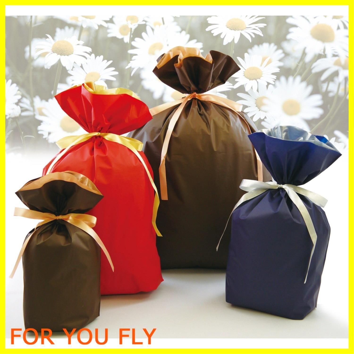 【在庫処分】フロンティアカクケイ 巾着袋 梨地 リボン付 底マチ付 M 20枚 ネイビー FK2407