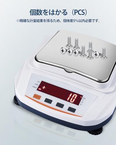 【風袋引き・個数をはかる】:風袋(容器)の重さを差し引き正味量をはかる。「個数をはかる」精確な計量結果を得るため、はかるもの個体差5%以内、1個あたりの平均重量が最低表示以上値必要です。
