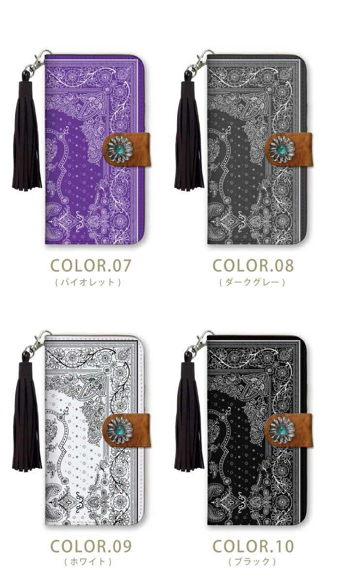 Xperia 5 SO-01M SOV41 803SO ケース 手帳型 エクスペリア5 スマホケース フリンジ ストラップ付 コンチョ ペイズリー柄 バンダナ柄 レッド ネイビー ブラック カッコイイ 男性 メンズ カラー06