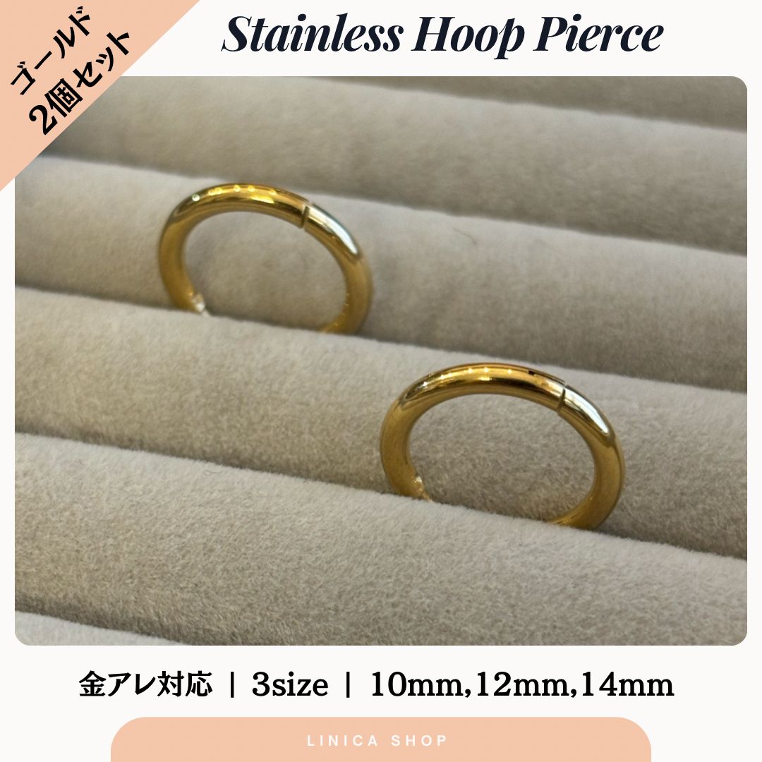 フープピアス ゴールド サージカルステンレス 金属アレルギー対応 つけっぱなし ピアス メンズ レディース ワンタッチ キャッチレス ファーストピアス 小ぶり シンプル 2個セット