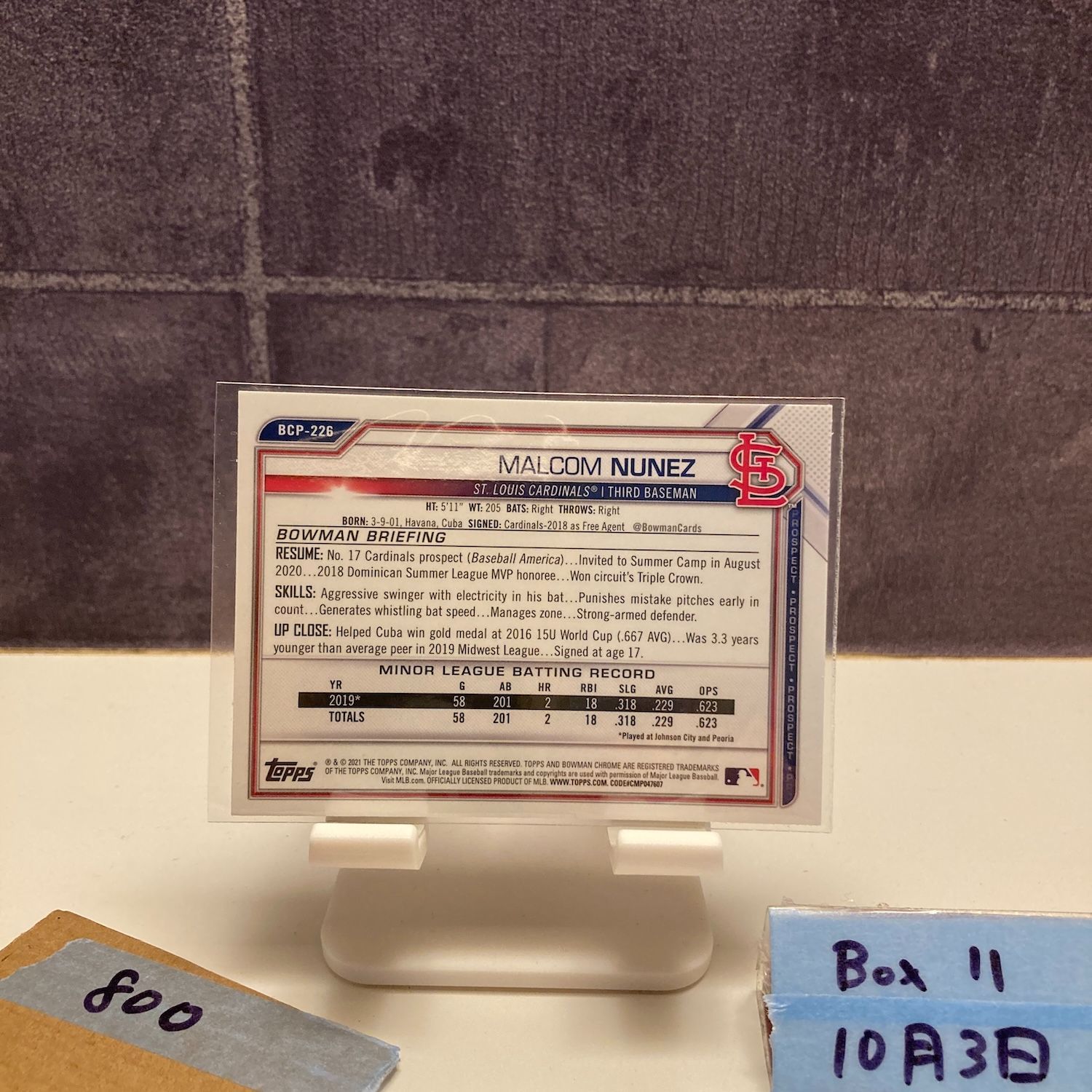2021 Topps Bowman Chrome Malcom Nunez St. Louis Cardinals Speckle Refractor Prospect カード