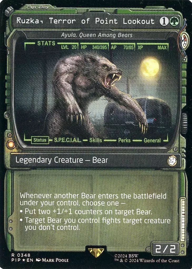 【中古】マジックザギャザリング 0348[R]:【PIP】【FOIL】【Pip-Boyフレーム】Ayula Queen Among Bears(Ruzka Terror of Point Lookout)/熊の女王、アイユーラ(ポイント・ルックアウトの恐怖