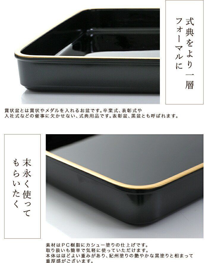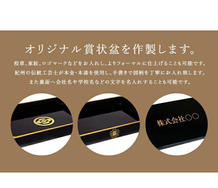 紀州塗り 賞状盆 PC 尺3寸(38.3cm) 日本製 国産 お盆 トレー 名入れ 家紋 表彰盆 表彰式 学校 入学式 卒業式 賞状 式典用品 催事 祭事 記念式典 イベント セレモニー