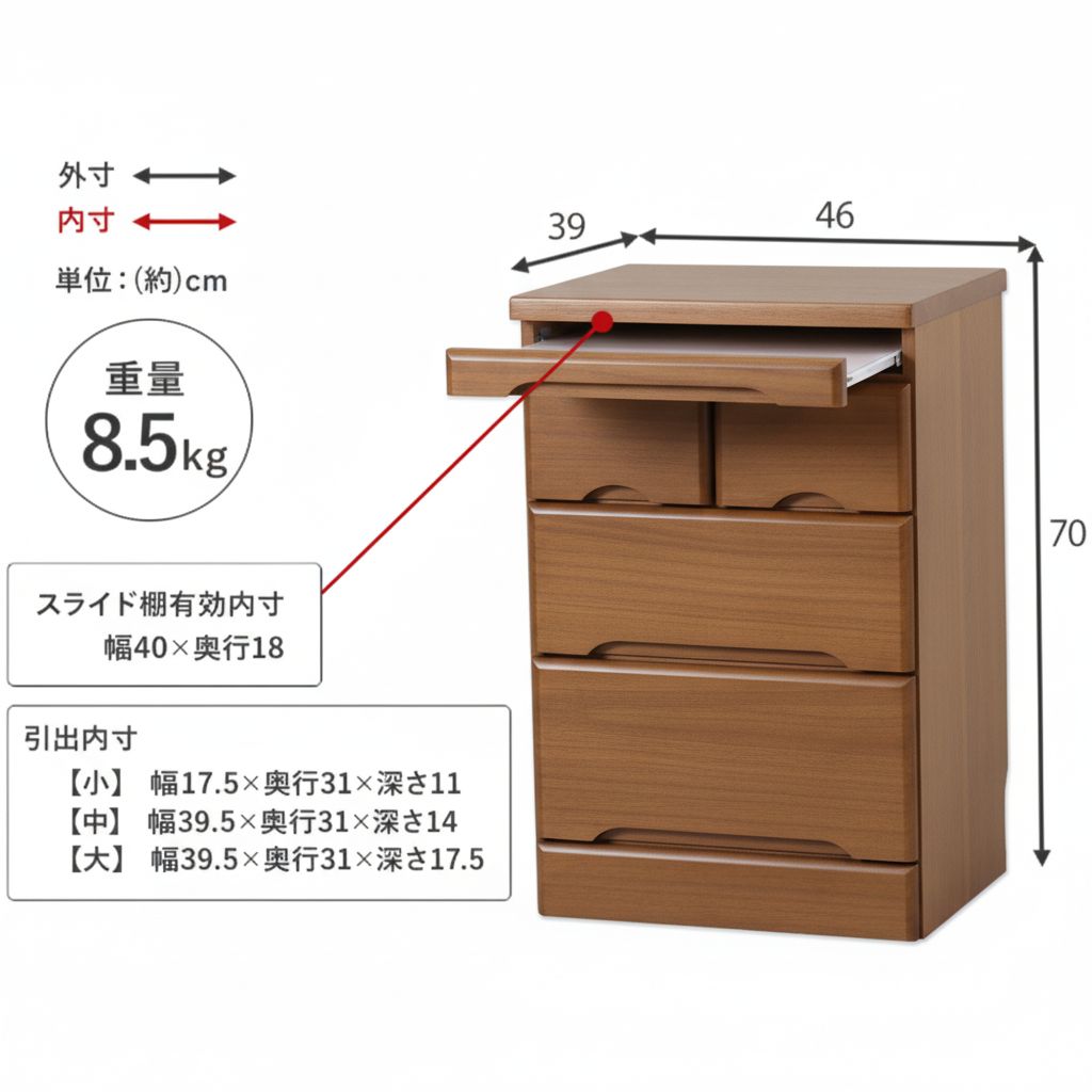 ■引出内寸中:(約)深さ14×幅39.5×奥行31cm