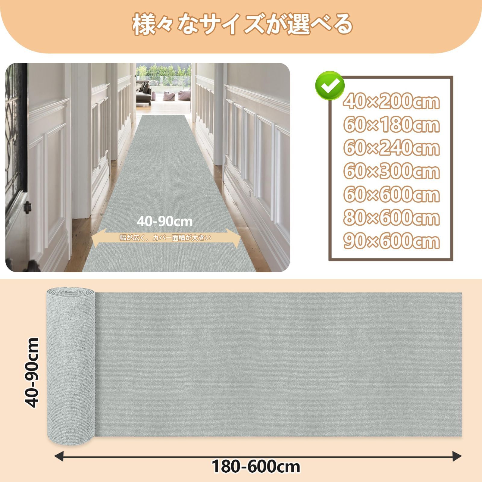【人気商品】【 限定ブランド】廊下敷きカーペット 吸着マット HDMOD 滑り止めカーペット 約40×200cm 厚さ4 mmロングカーペット ロールカーペット 洗えるカーペット 防音 ラグ 無地 ペット 置くだけで吸着マット ロングマット 薄い ロールマット