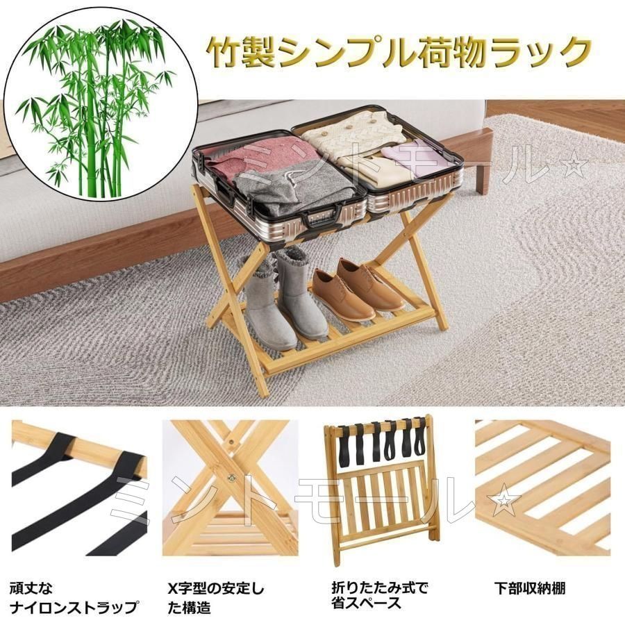 【新品?未使用】新品スーツケース収納ラック、おしゃれ 竹製 荷物ラック ラゲッジラック、折りたたみ式 バゲージラック 荷物置き バッゲー