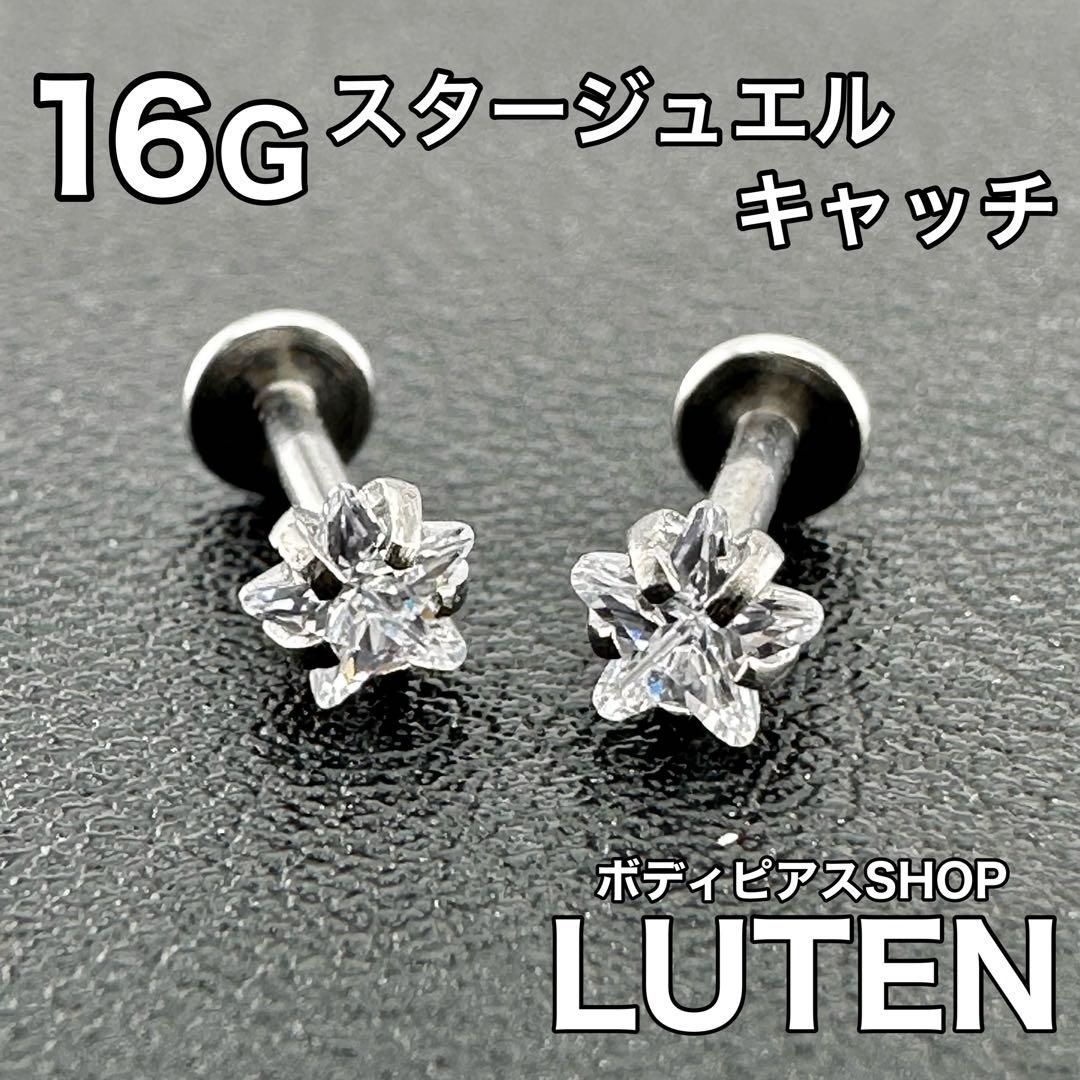 16G ラブレットスタッド スタージュエルキャッチ クリア インターナル 立て爪 耳たぶ 軟骨 イヤーロブ アンテナ ヘリックス トラガス リップ 口ピアス サージカルステンレス 金アレ対応 つけっぱなし 高品質 ボディピアス LUTEN ルテン