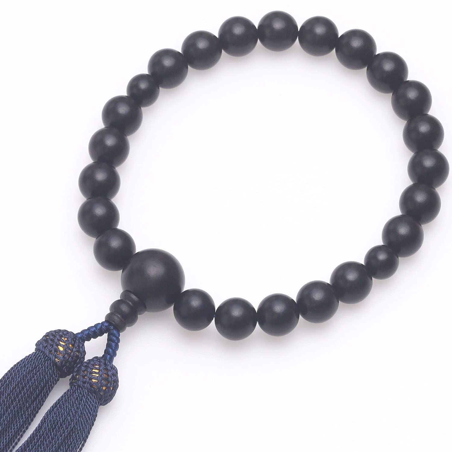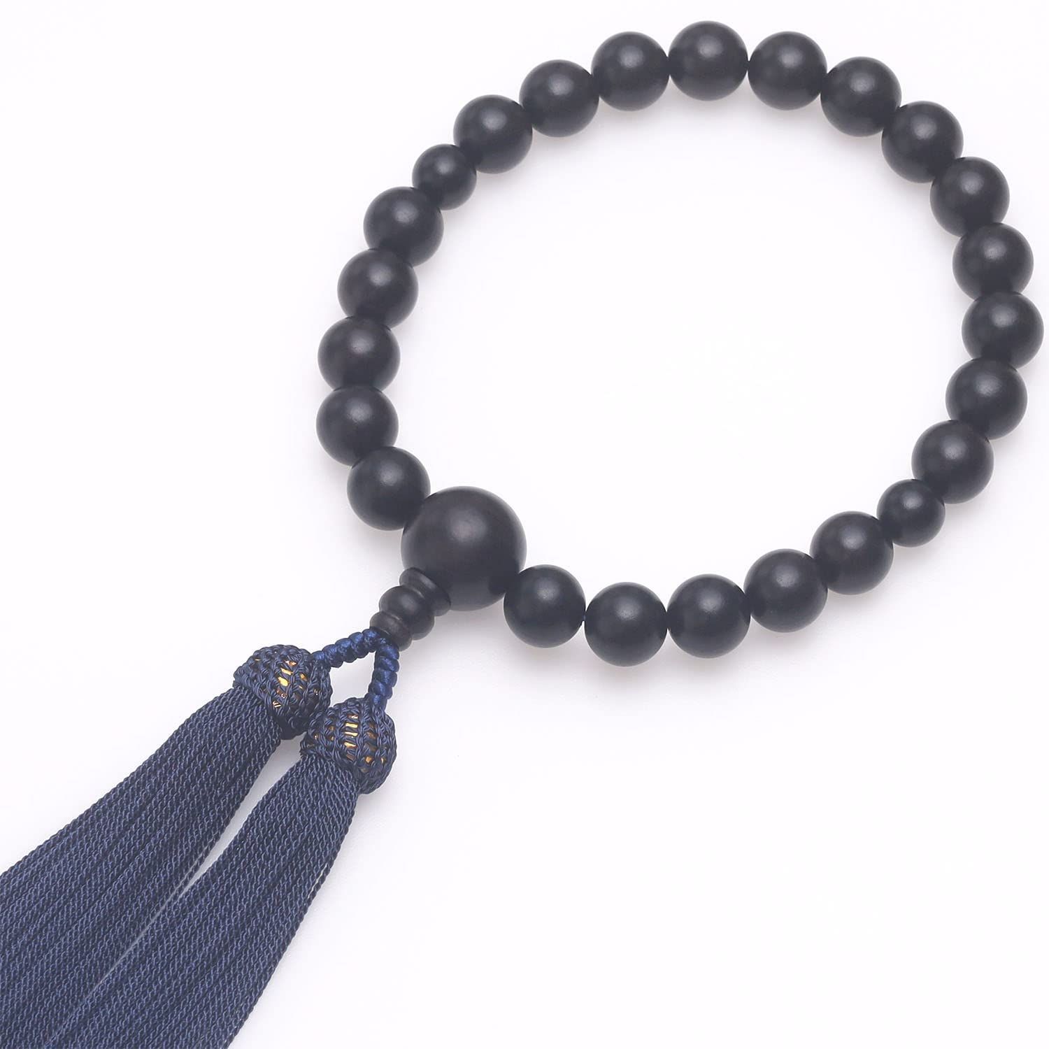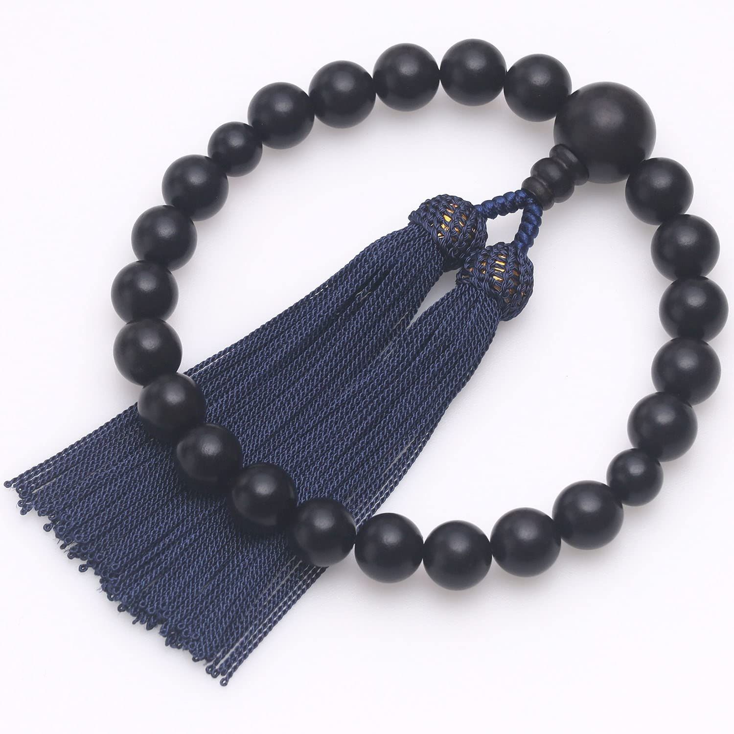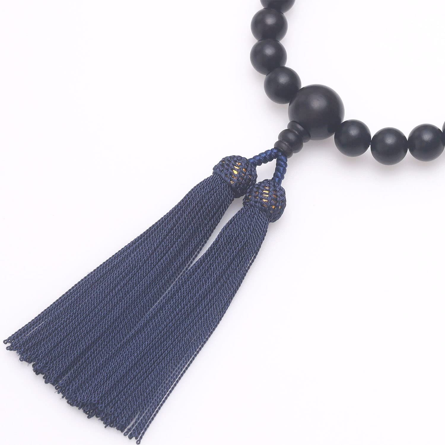LEOBEE 数珠 男性用 縞黒檀(艶消) マグネット式数珠袋付き 念珠 じゅず 手作り念珠 葬式 葬儀 墓参り 法事 念誦 全ての宗派に使用可能