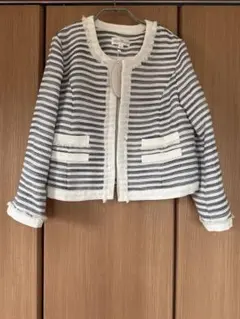 Sweet Mommy ノーカラージャケット M 白/黒ストライプ