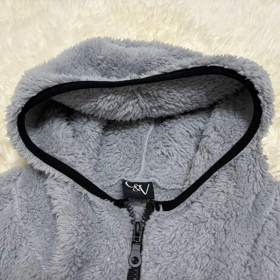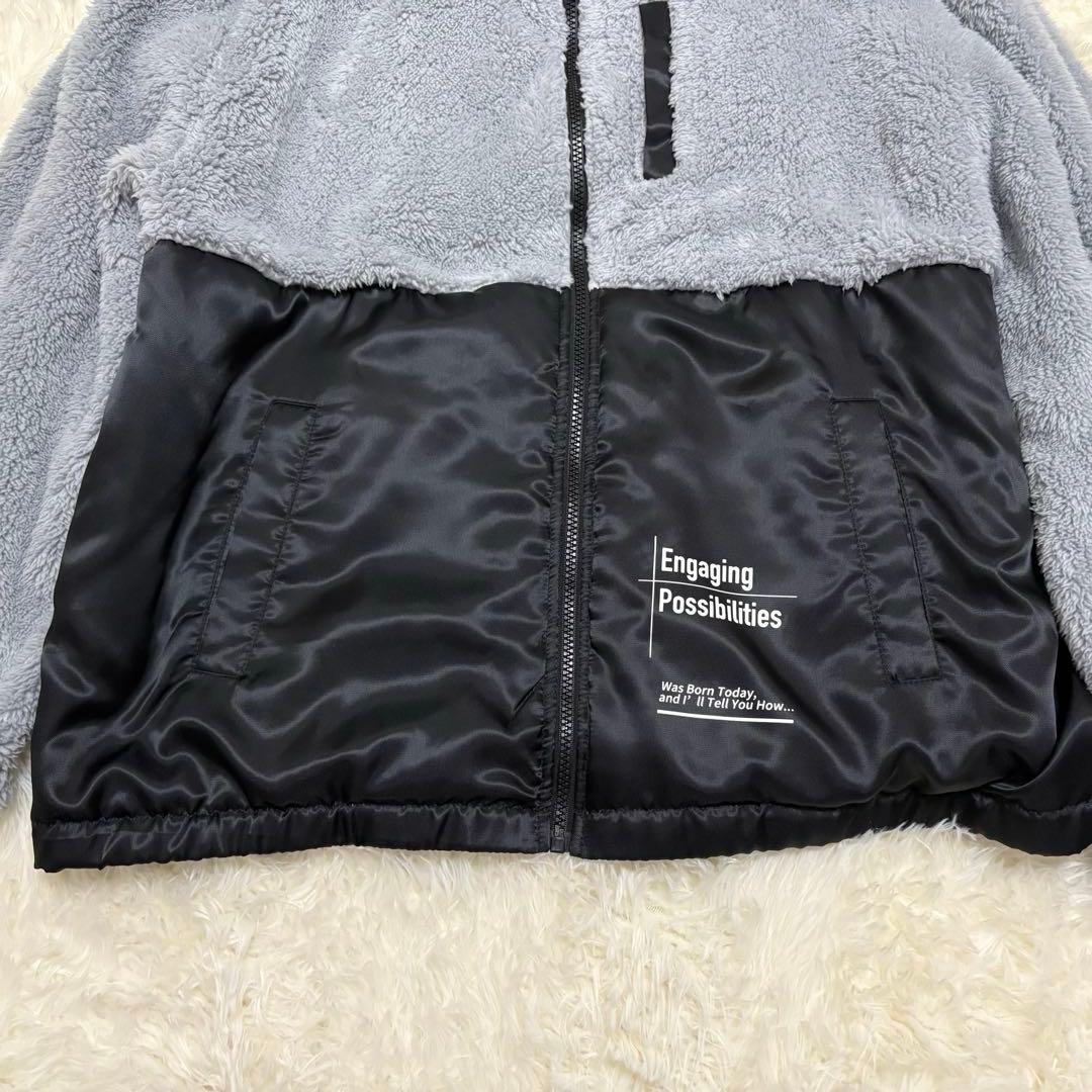 ★目玉商品★フーディーボアジッパージャケット グレー/ブラック Mサイズ