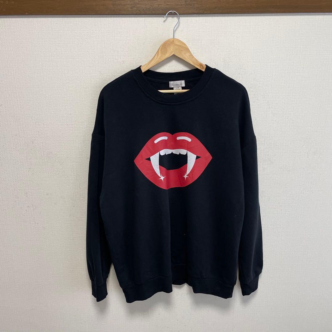 USA古着 スウェット L ブラック 黒 プリント ヴァンパイアリップ 裏起毛