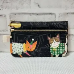 【ハンドメイド】猫ちゃん柄 ダブルファスナーポーチ