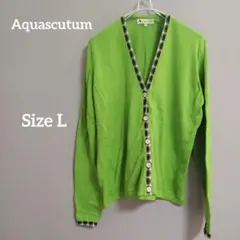 Aquascutum Vネックカーディガン ライムグリーン ヨーロッパ古着 秋冬