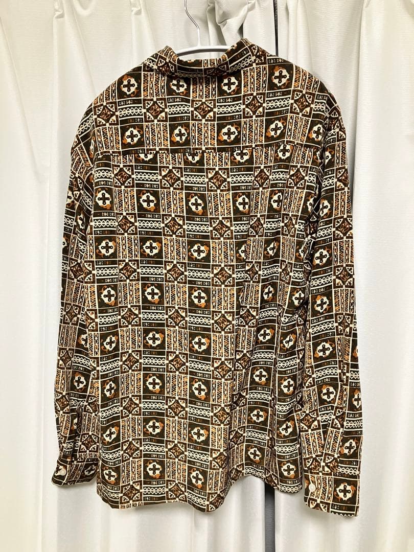 【美品】HALHAM 幾何学柄シャツ ブラウン系 長袖 M