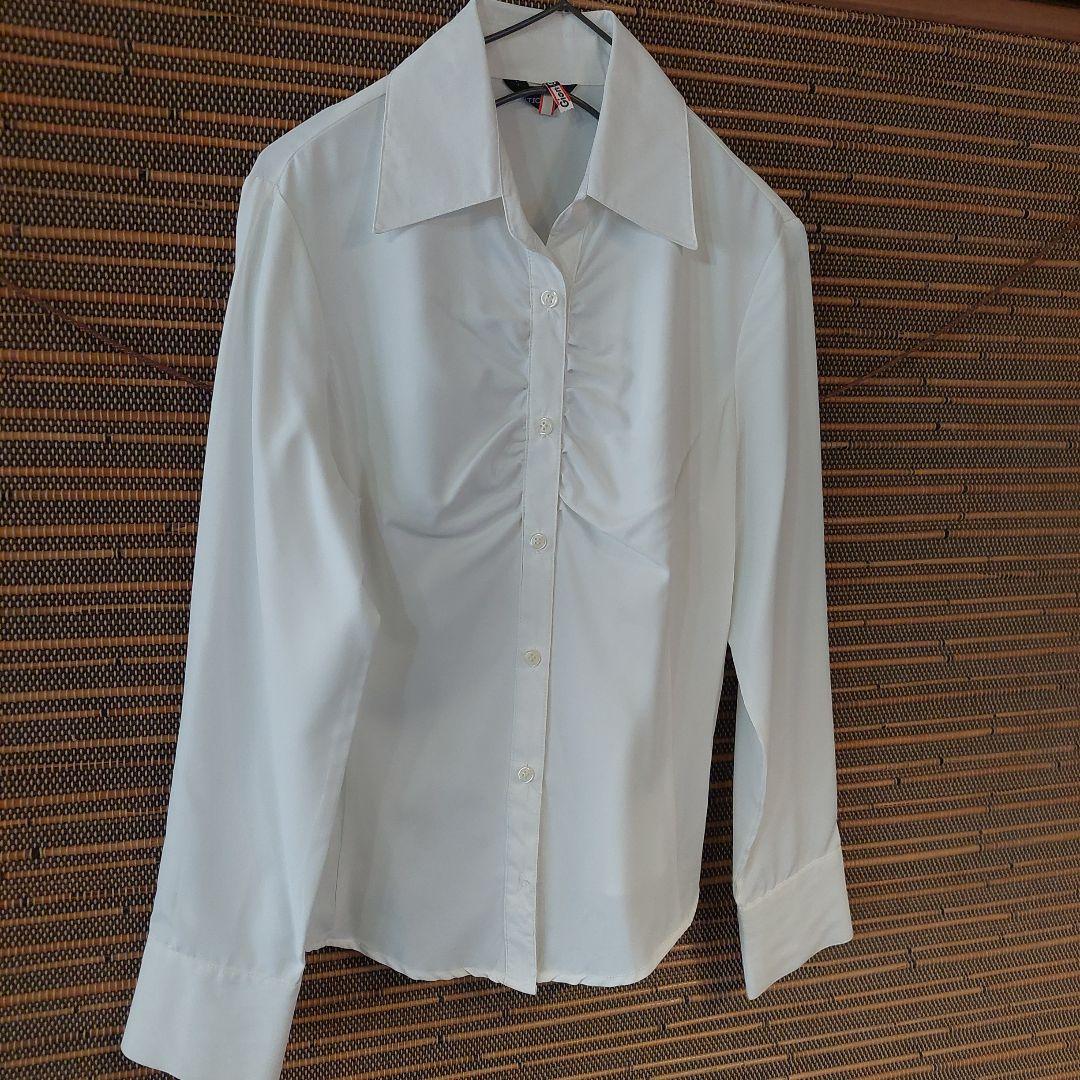 無難に使いこなせる白シャツ⭐クリーニング済み⭐白⭐胸元ギャザー⭐L