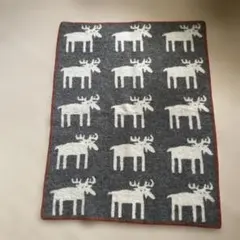 KLIPPAN トナカイ柄エコウールミニブランケット グレー白 赤ステッチ