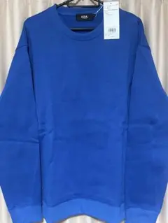 BLACK by NICOLEポリ混ニットシャツ長袖紺白縦線48新品未使用