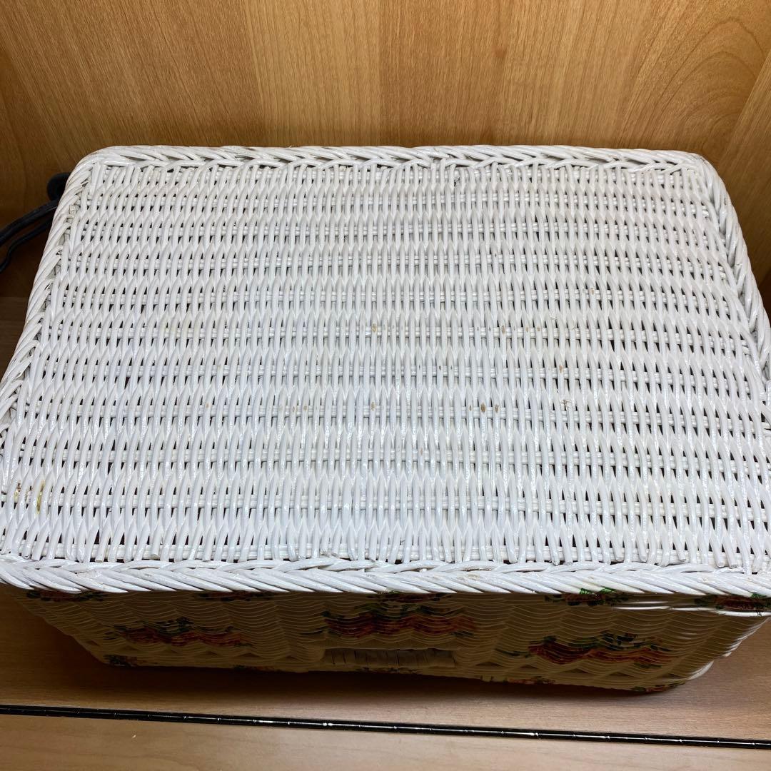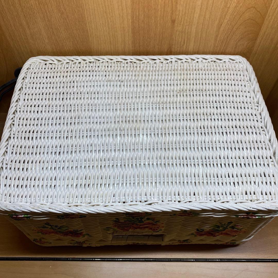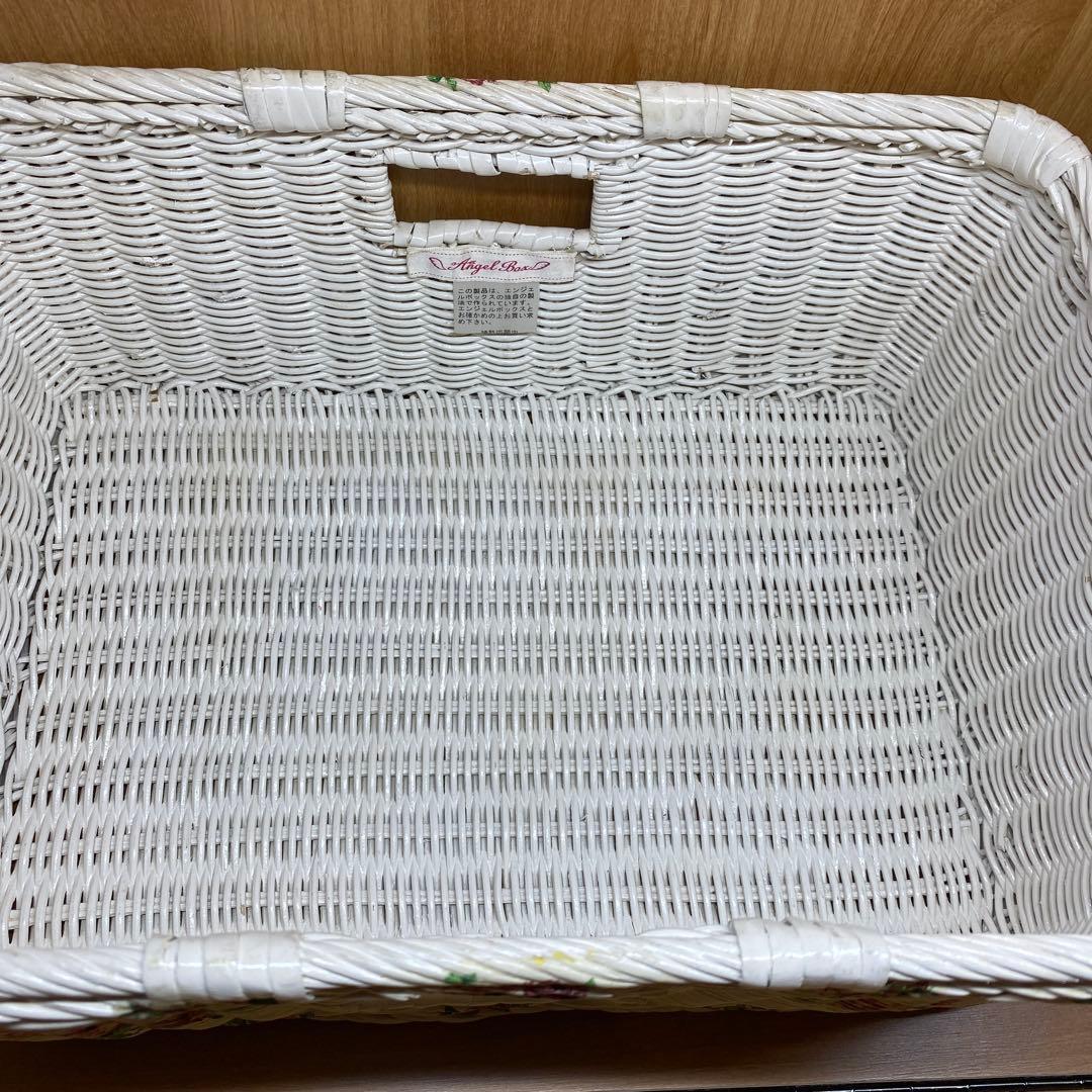 籐製バスケット デコパージュ 薔薇 白 ホワイト 収納 ボックス ローズ イマン