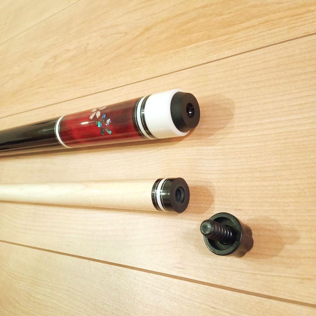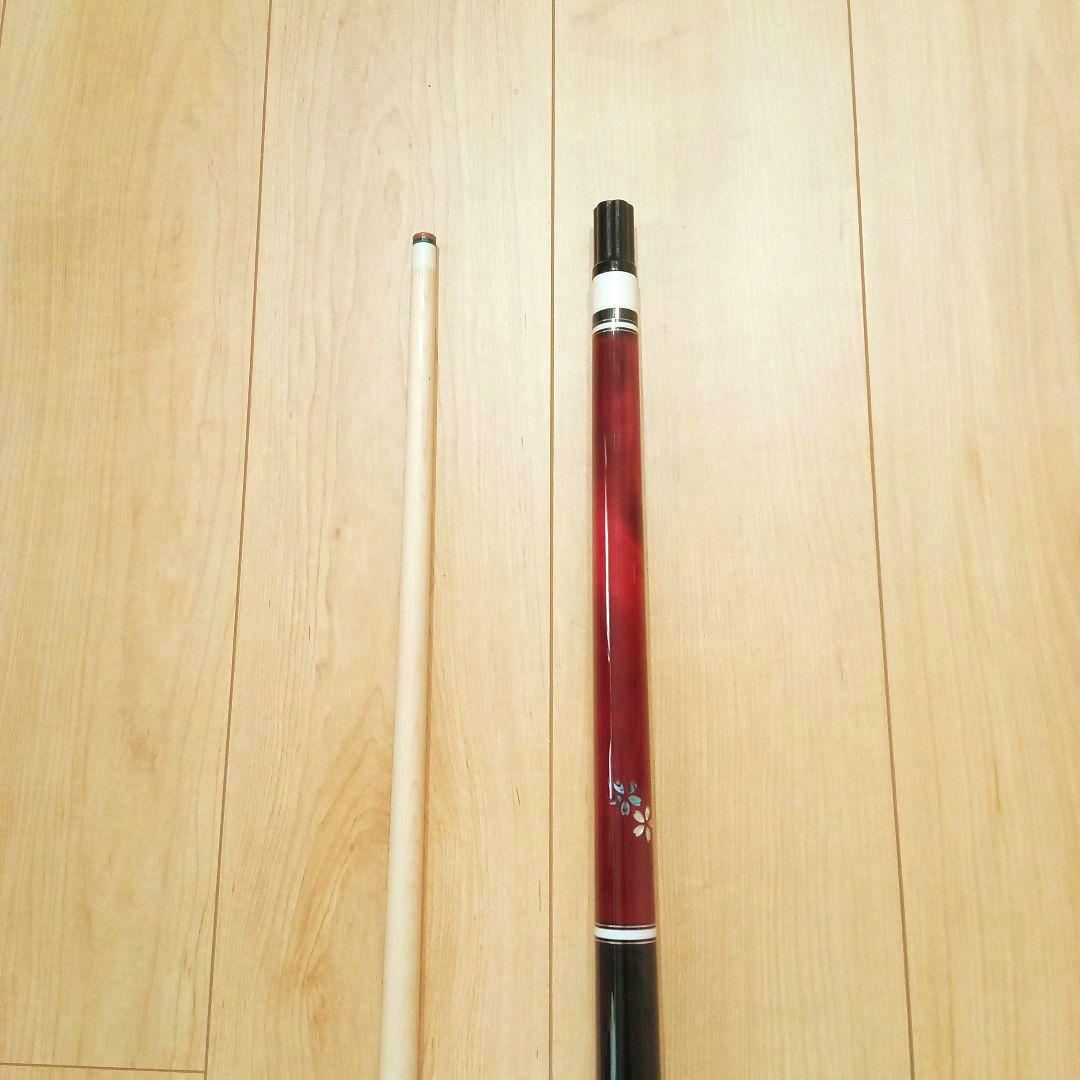 ご覧頂き有り難うございます ビリヤードキュー プレイ用になります 桜型のリアルシェルインレイで とてもおしゃれで格好良いキューです 新品未使用品ですので、試打はして おりませんが、バランスやシャフトの 振動の収まりも良いので上級者も納得の 品質のキューかと思います スペック シャフト 108グラム バット 422グラム 先端径 12.0ミリ ジョイント径 21.8ミリ グリップ ノーラップ タップ 豚革6枚積層レインボー ジョイント ラジアル エクステ対応バンパーゴム 付属品 オス.メスジョイントキャップ 新品未使用で、もちろん曲がりや音鳴り等の 不具合はありませんが、あくまで個人保管品 という事をご理解の上ご購入ください(^^)