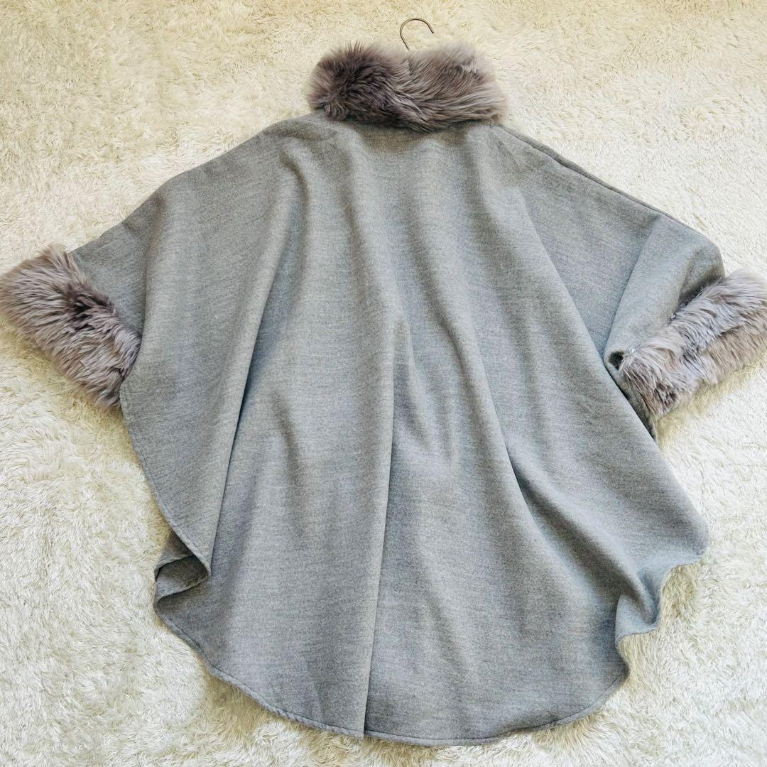 【ONLISA】美品 グレー ポンチョケープ ファー取り外し可能2WAY 3XL