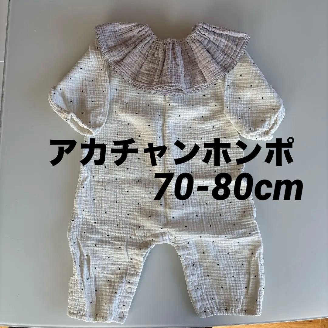 アカチャンホンポ スタイ付き ホワイト ドット柄ロンパース 70-80cm