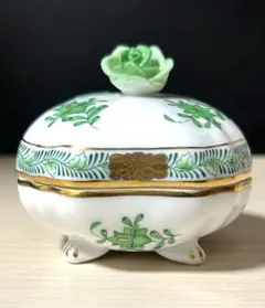 ヘレンド アポニーグリーン スクエアボックス ローズ脚付 ※未使用保管品