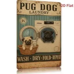 【新品・未使用】メタルサイン パグ ランドリー インテリア 装飾 ヴィンテージ調