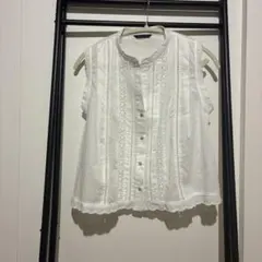 新品タグ付き CAMEO ノースリーブシャツ ブラウス 刺繍 レース切り替え 白