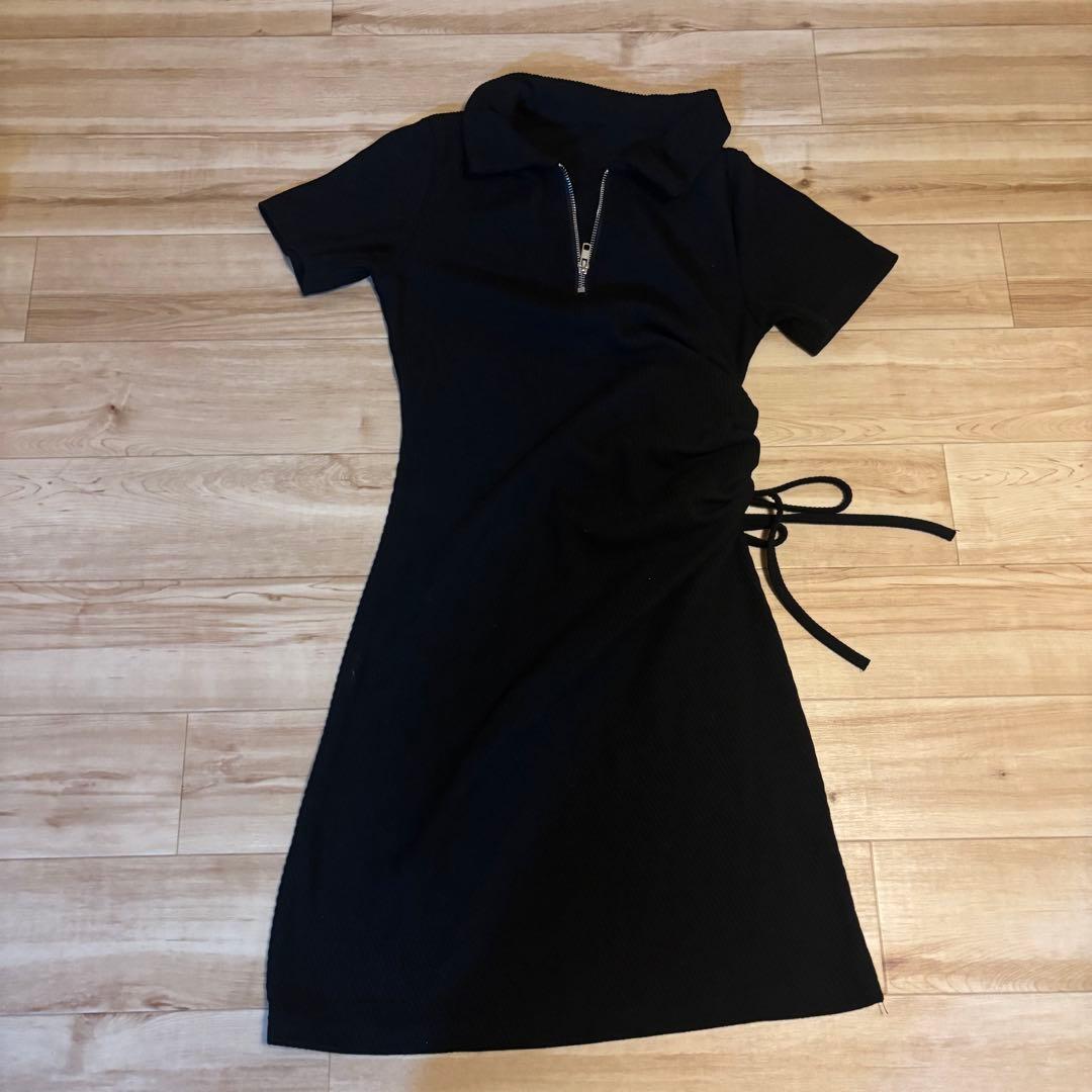 黒 ジッパー付きポロネック ミニワンピース 半袖