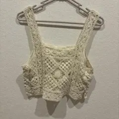 【ロメオ】(M)ニットベスト ノースリーブ カットワーク かぎ編み リブ切り替え