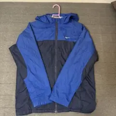 【ナイキ】90sフーディナイロンジャケット刺繍スウォッシュロゴネイビーブルー古着