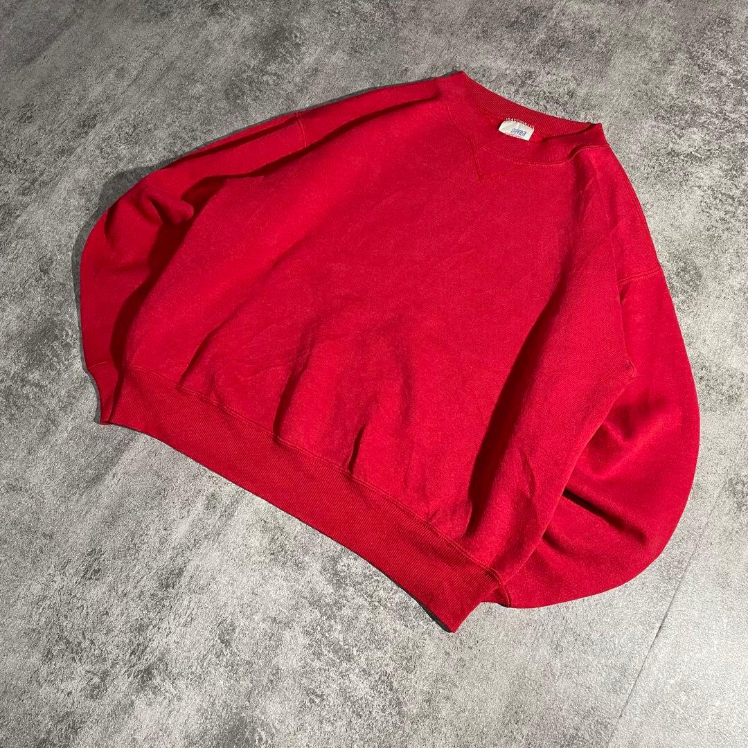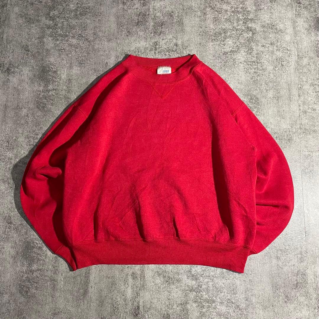 80sスウェットULTRA SWEATS無地赤USA製フェード前Vガゼット短丈M