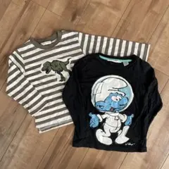 お値下げ★100cmロンT恐竜柄ボーダー&スマーフ黒記名なし