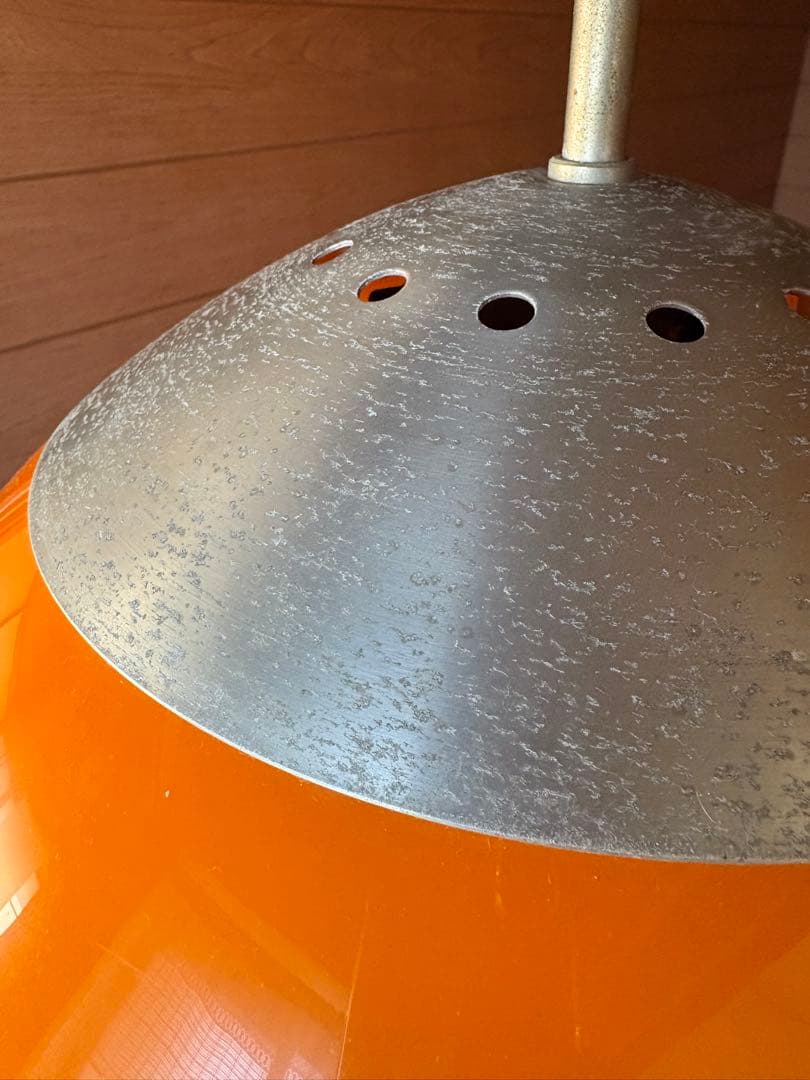 通電確認済み。レトロなオレンジのプラスチック製シェードと、その下のクリアなプラスチック、半円型のデザインがレトロで、スペースエイジ風でもあり、とても素敵です✨