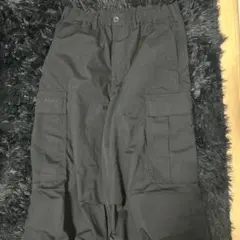 ブラック カーゴパンツ ゴムウエスト