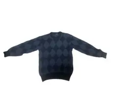 (美品)HORKINSE 青ニット Mサイズ 古着 アーガイル柄ニットセーター