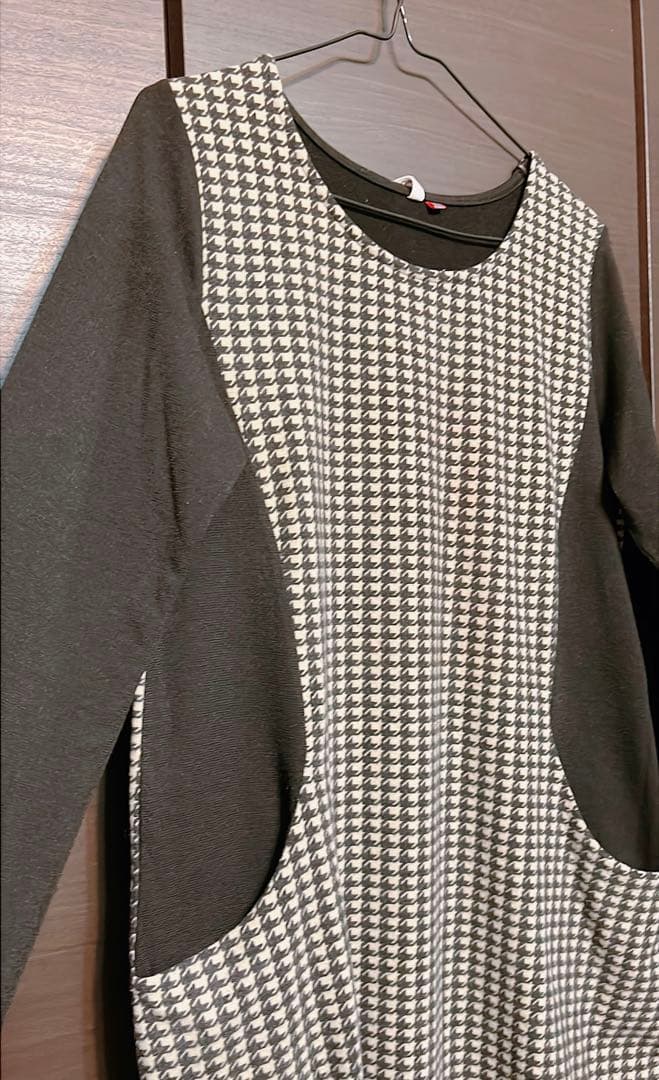 hkworksLondon♥️ポケット付き千鳥柄チュニック ワンピース/L黒