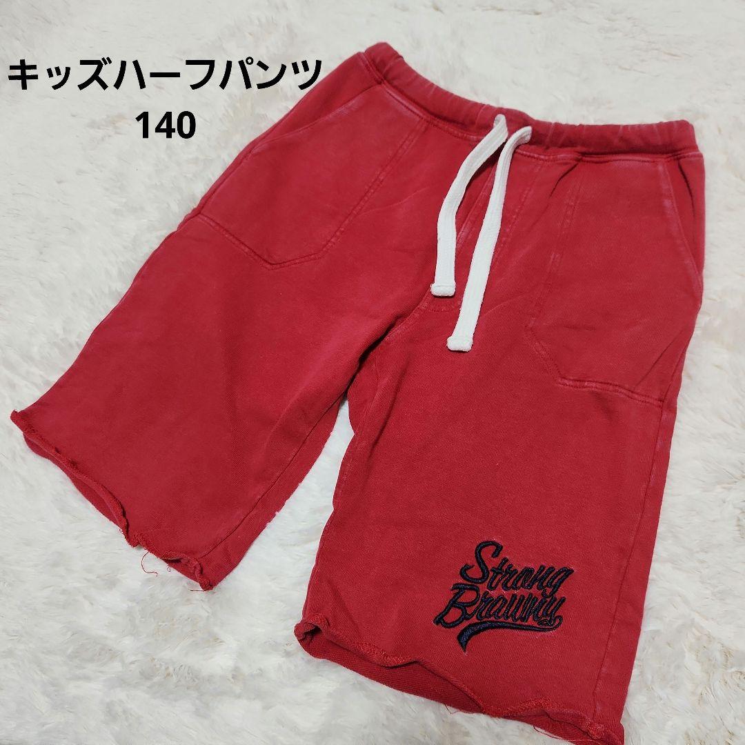 ダメージ加工キッズハーフパンツ 赤 140刺繍