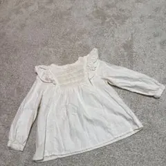 100cm★白★フリル襟カットソー ロンT 女の子 Tシャツ トップス