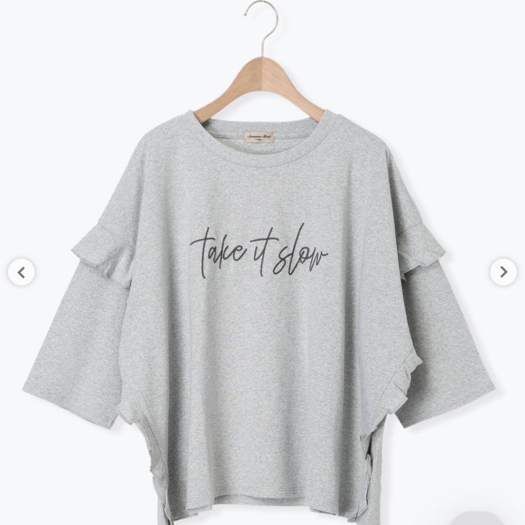 Samansa Mos2 [接触冷感]袖フリルロゴ刺繍Tシャツ