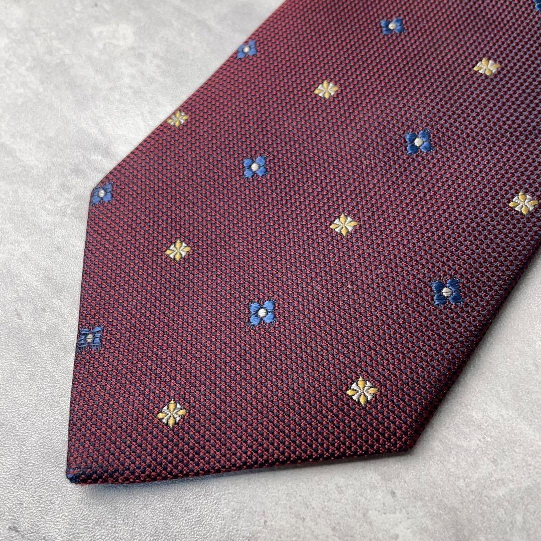 美品 FAIRFAX ジャガード 花柄 小紋柄 ネクタイ ボルドー ワインレッド