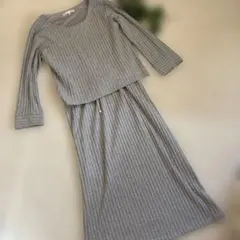 【未使用に近い】 グレー リブニット ロングワンピース イッツデモ