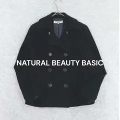 美品◆アンゴラウールブレンドベーシックピーコート ブラック シンプル 大人可愛い