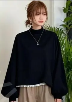 黒 バルーンスリーブ ハイネック トップス 10/13到着分