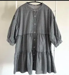 ハニーズC•O•L•Z•Aコルザ半袖ティアードブラウス 黒白チェックLチュニック